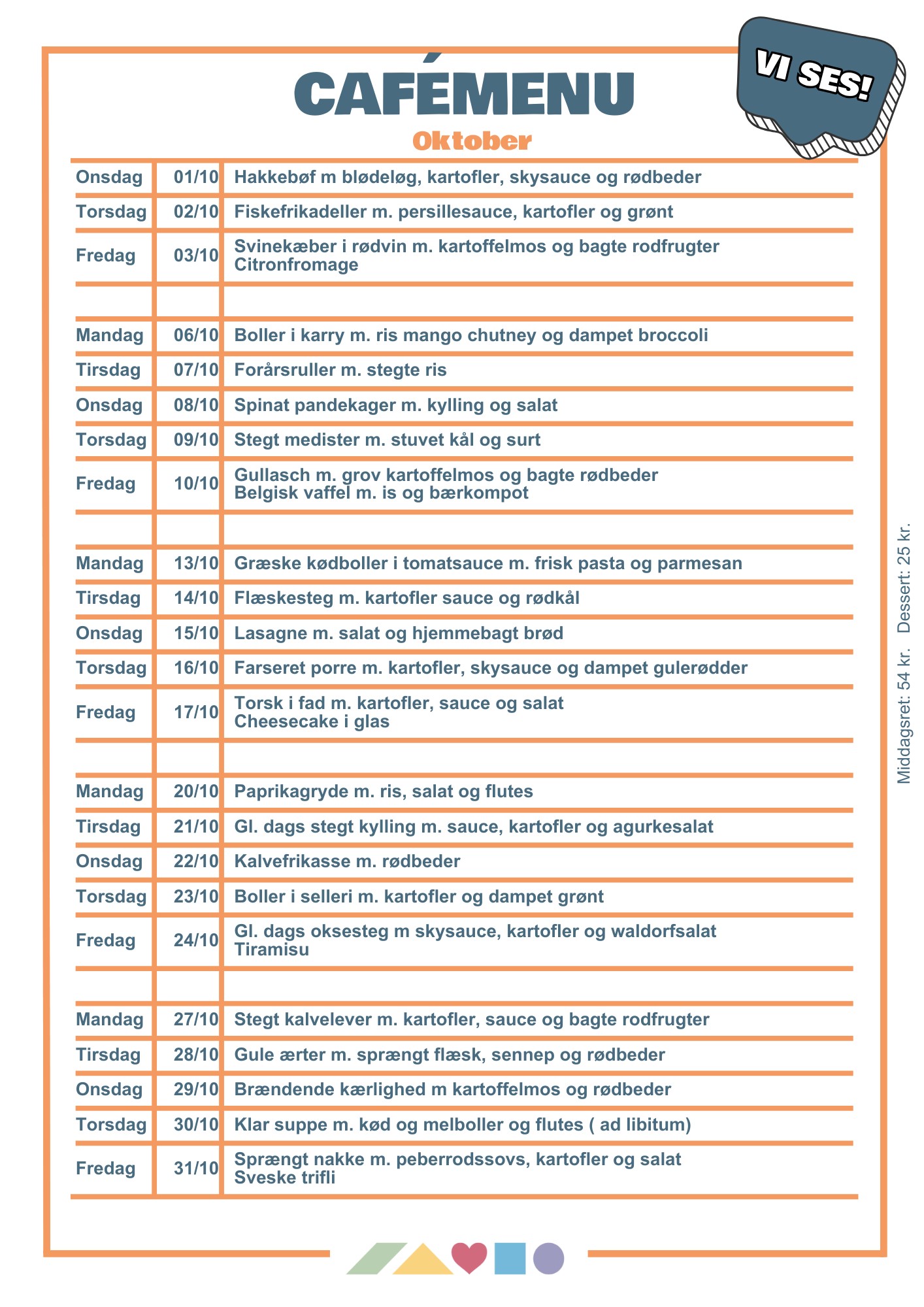 Vi serverer middagsret fra klokken 11.30-13.00.