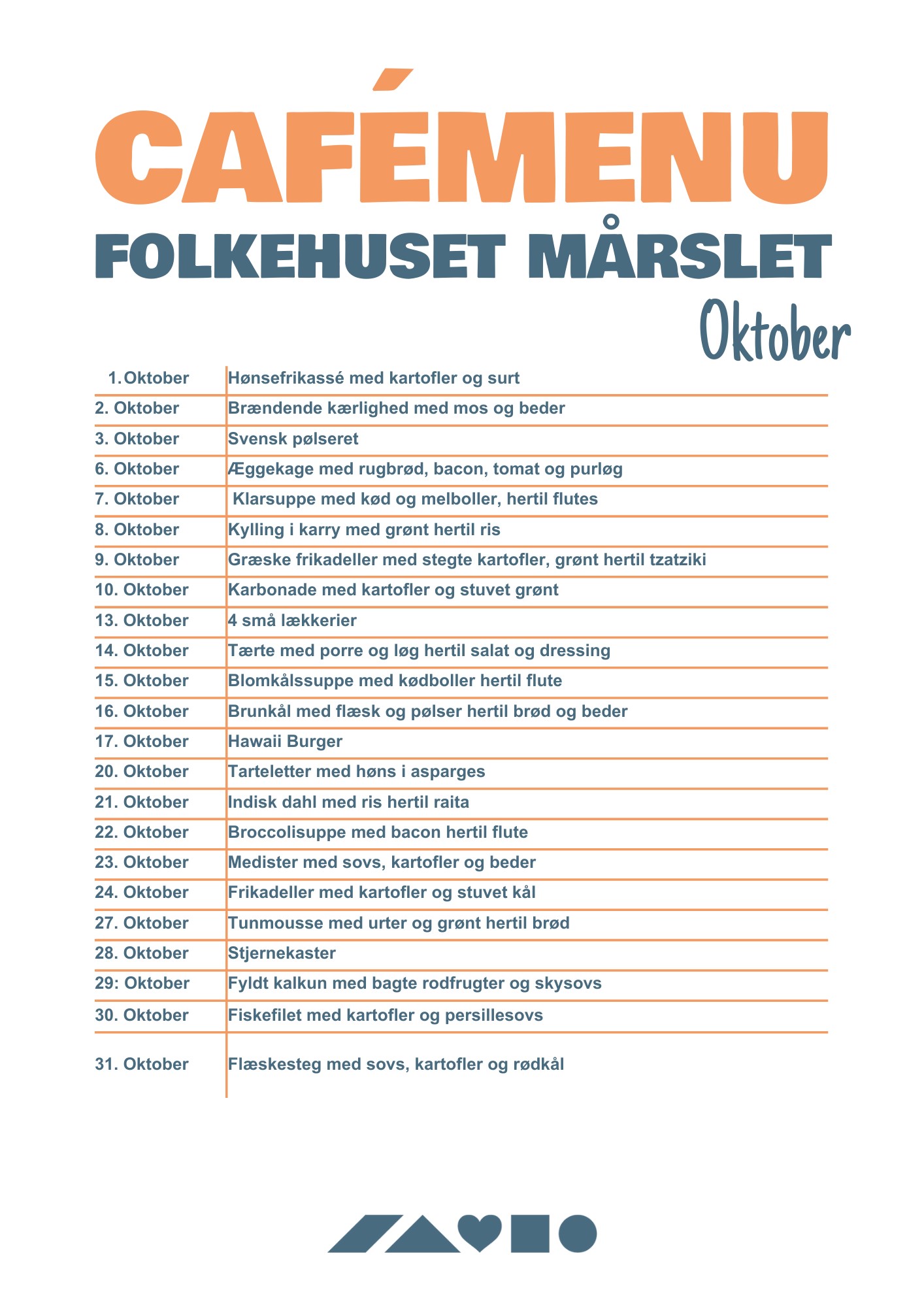I Folkehuset Mårslet ligger en hyggelig Café, der er åben for alle. Her kan generationer mødes og hygge sig omkring en kop kaffe eller et måltid mad.