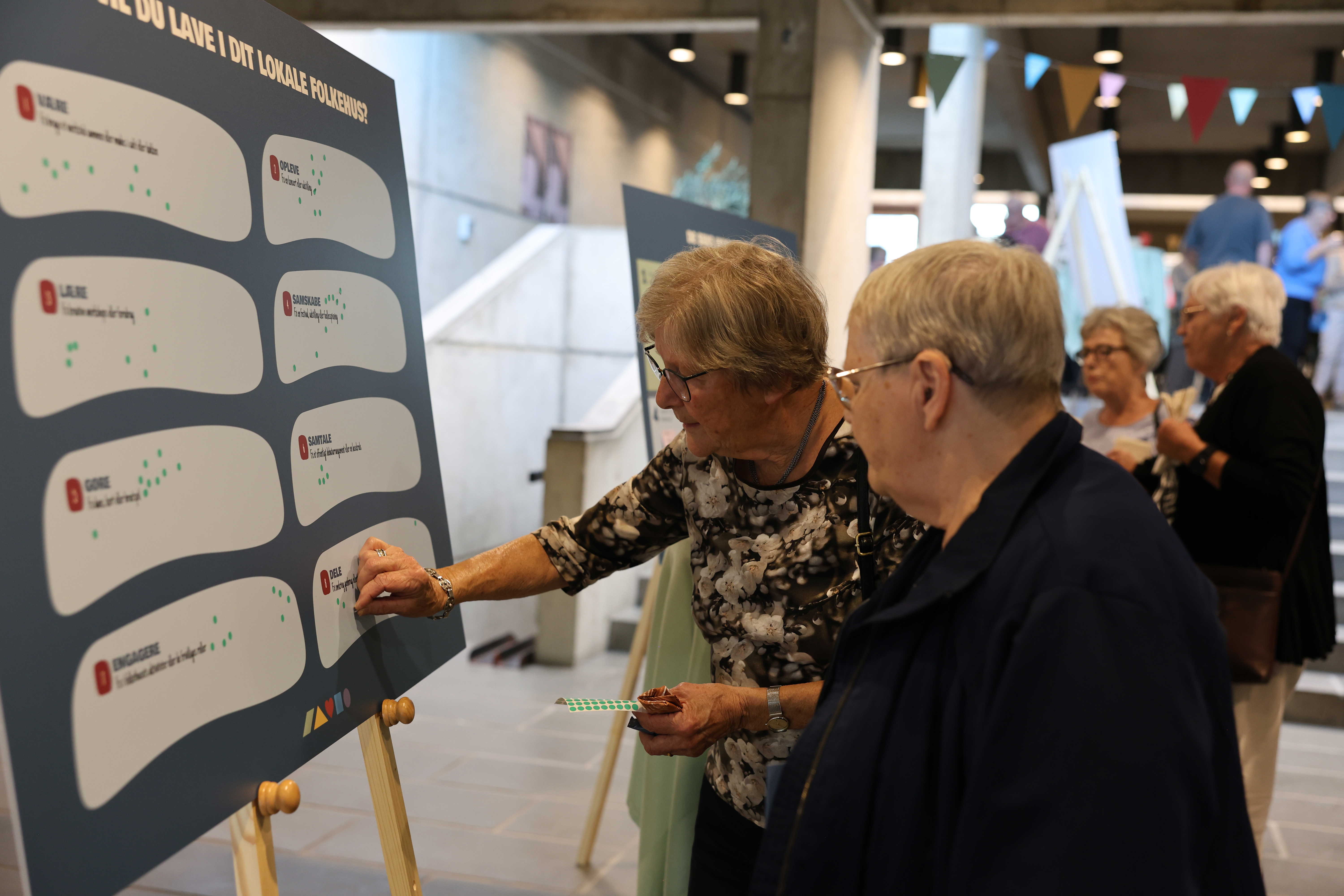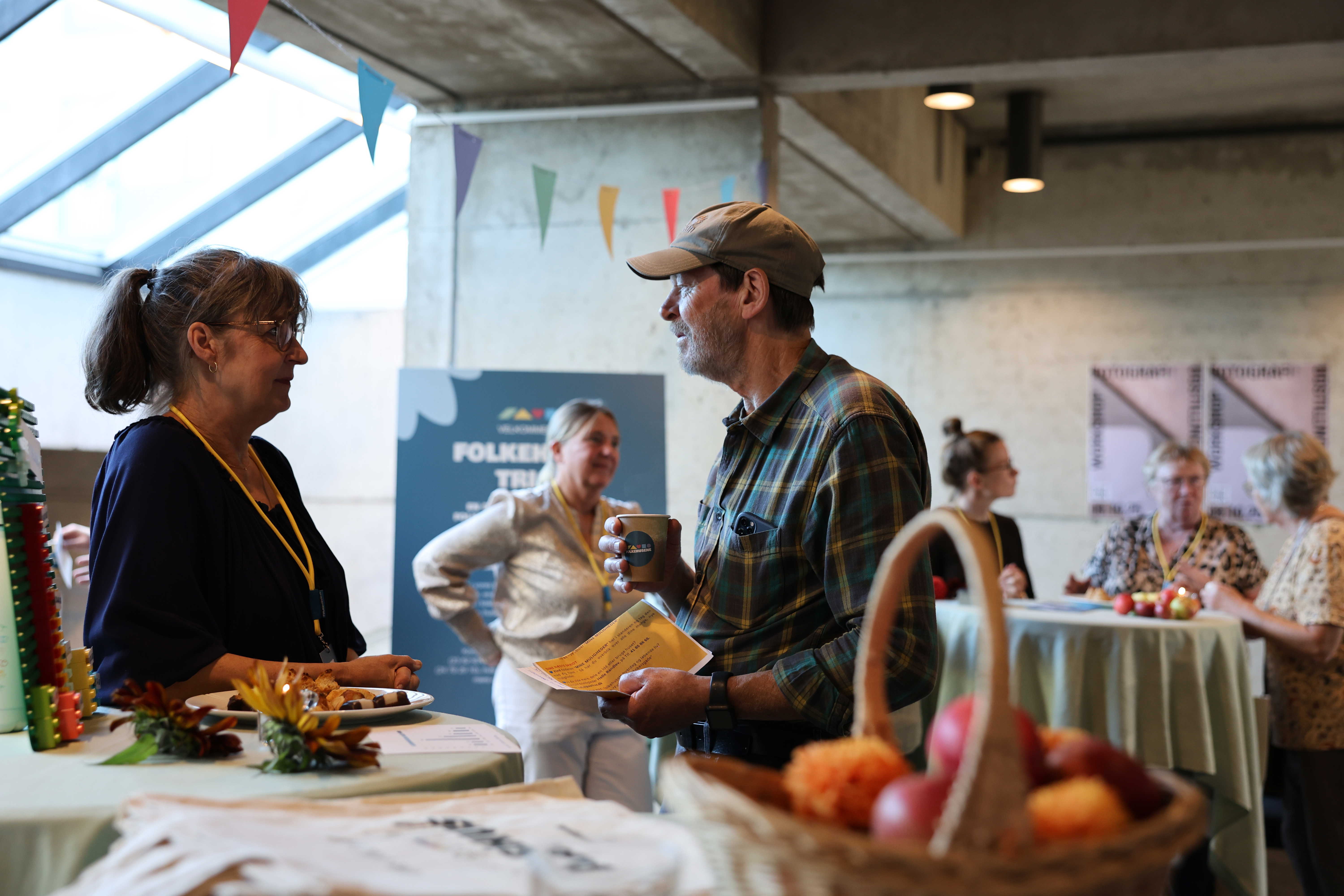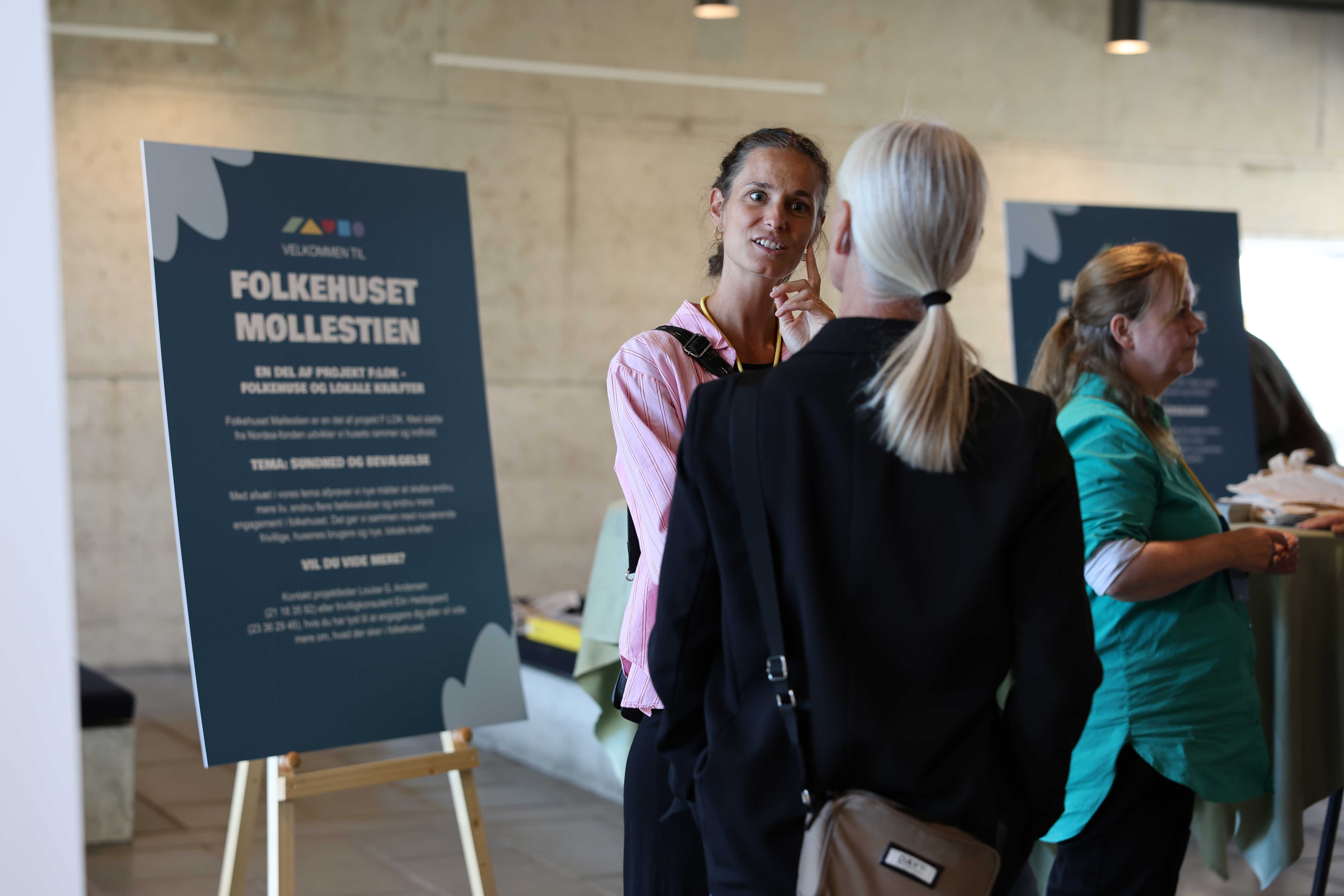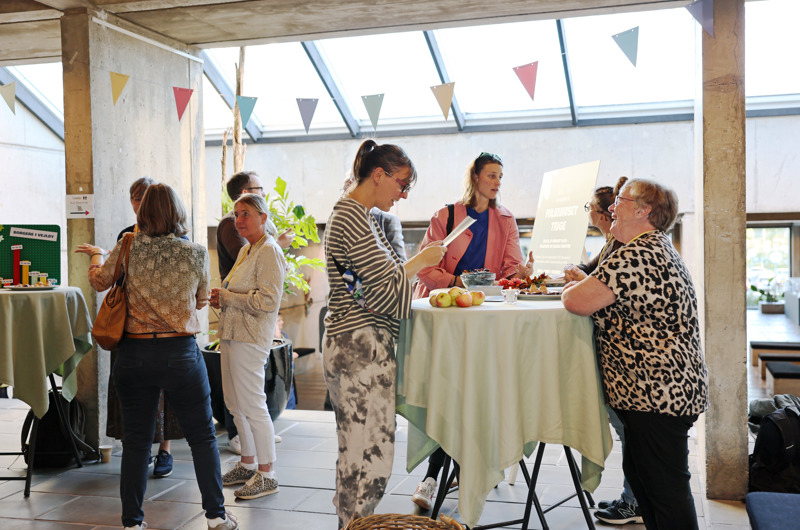 På stande kunne deltagerne møde de seks temafolkehuse i projektet, der skal arbejde med lighed i sundhed, generationsbrobygning, sundhed og bevægelse, kultur og fællesskaber, samarbejde med det lokale bibliotek og fællesskab i opland.